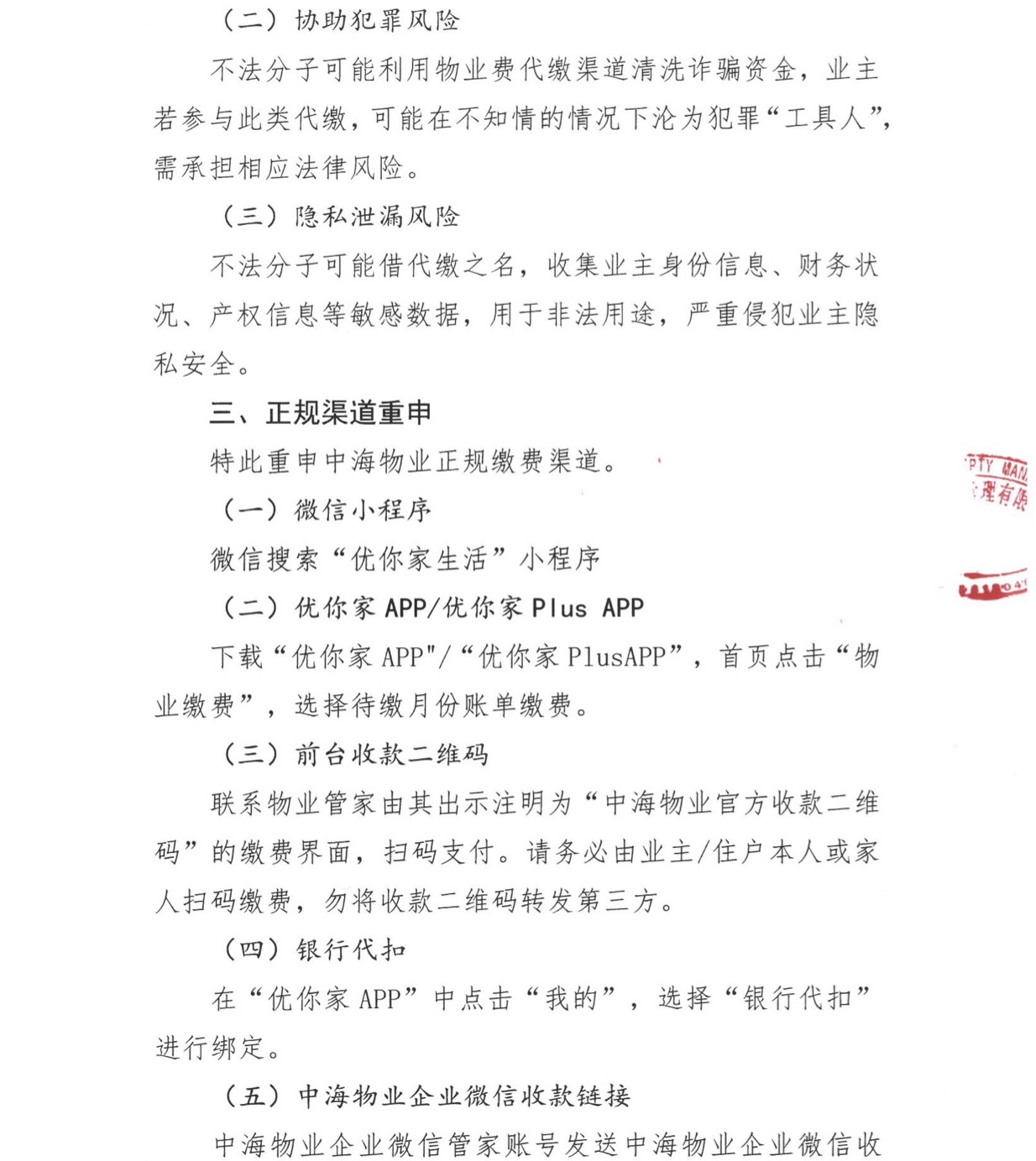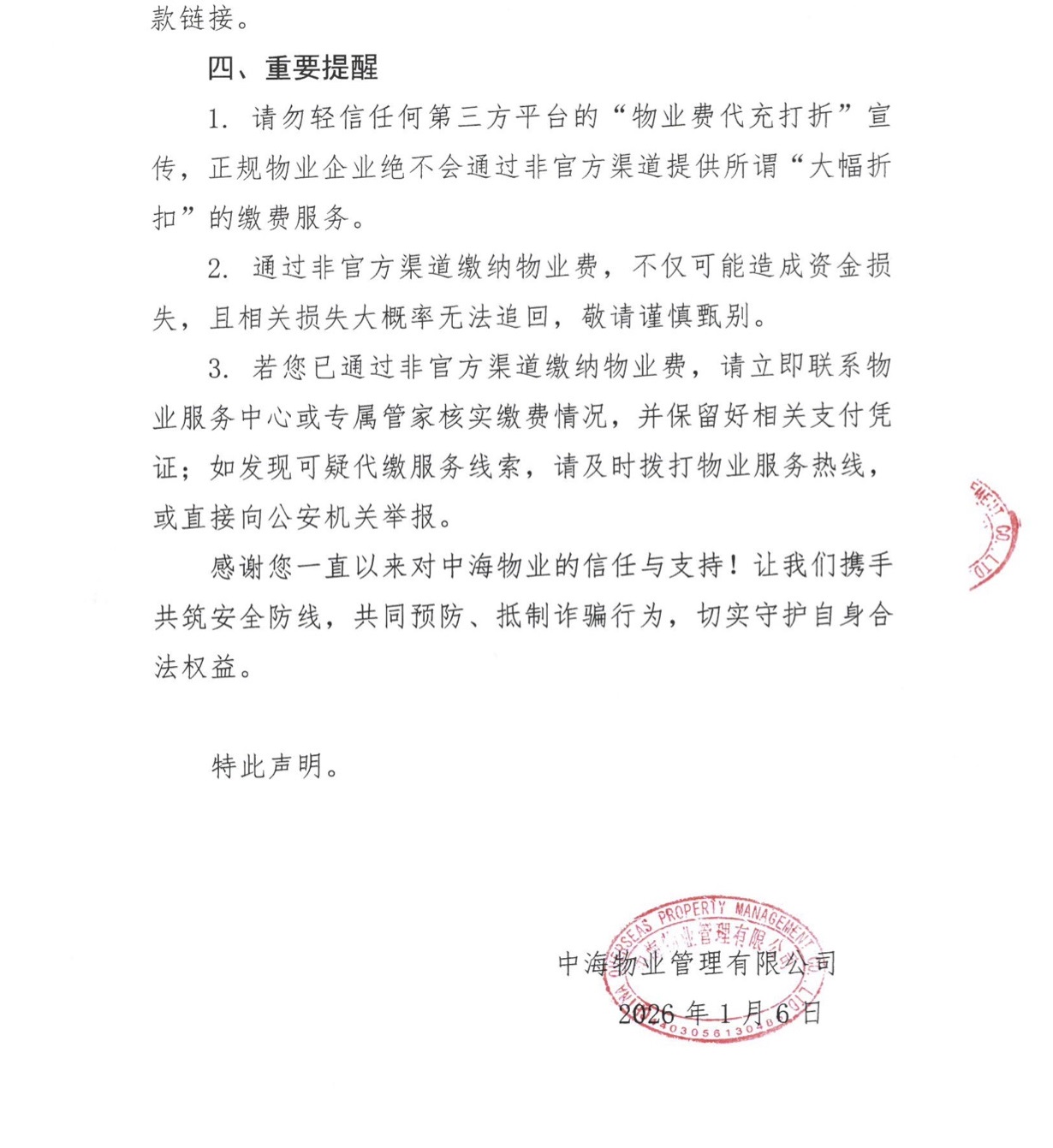 緻中(zhong)海物(wù)業全體(ti)業主(zhu)關于(yu)繳費安(an)全防範的(de)聲明