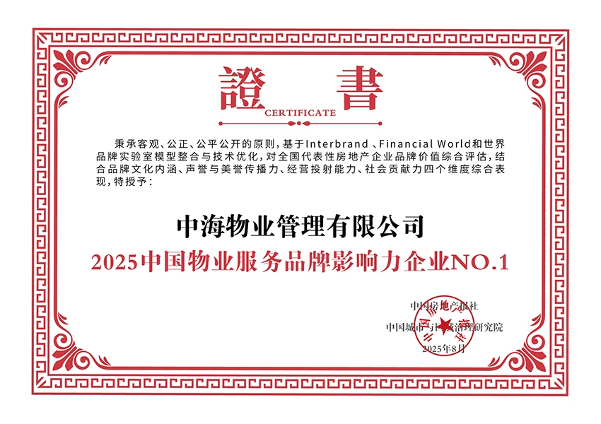 2025中(zhong)國(guo)物(wù)業服務(wu)品(pin)牌影響力(li)齊(qi)業NO.1