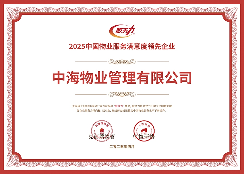 中(zhong)國(guo)物(wù)業服務(wu)滿意度領(ling)先(xian)齊(qi)業 TOP1